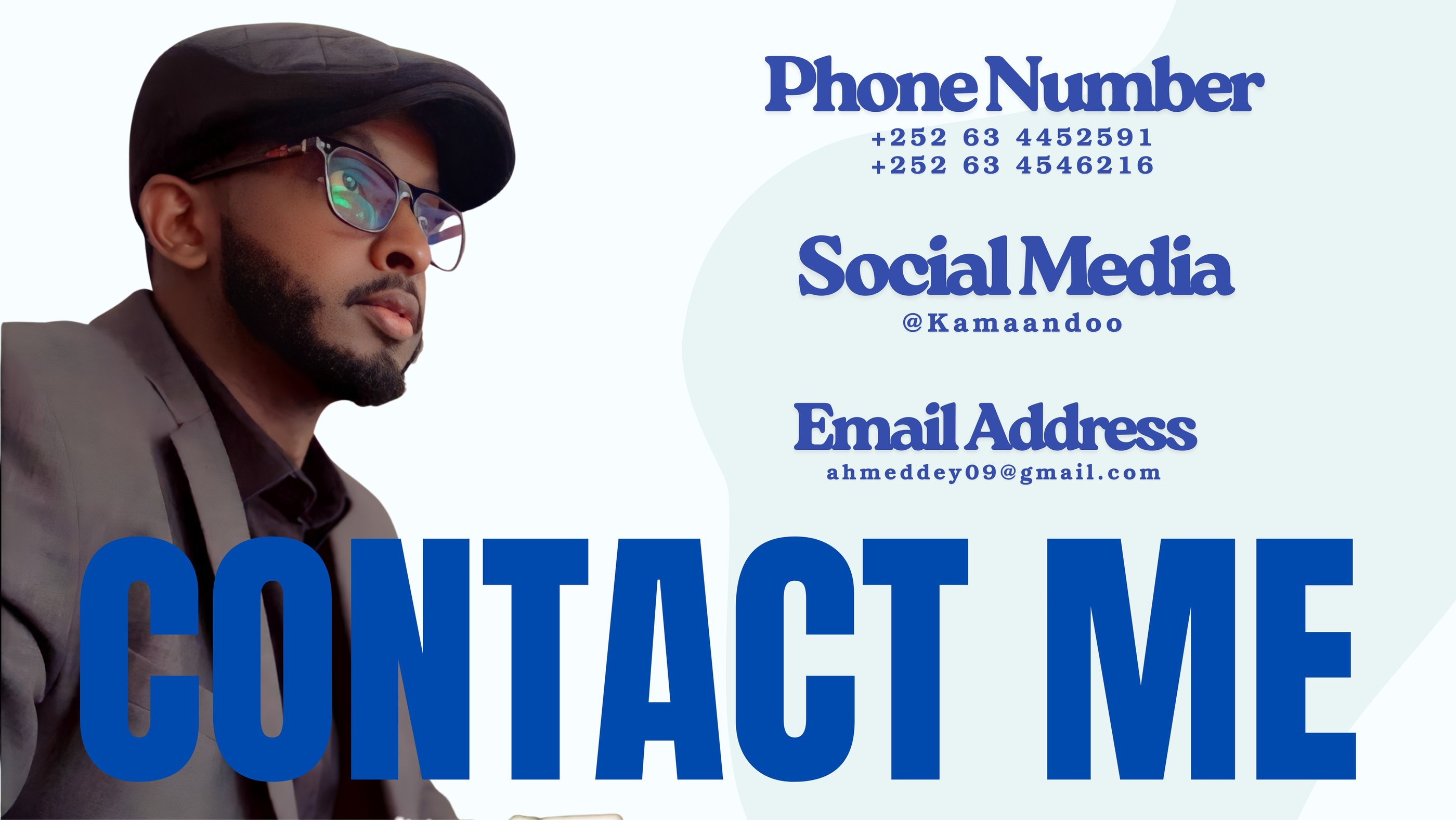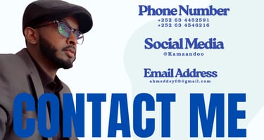 My name is Eng. Ahmed Abdullahi Aden, also known as Kamaandoo. I was born in Awdal, Borama, a place that shaped my values, discipline, and the ambition I carry today. Growing up in a hardworking community taught me responsibility, resilience, and the importance of serving people with honesty and dedication.