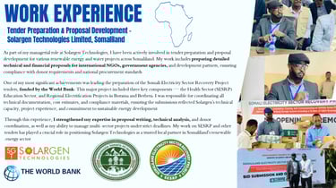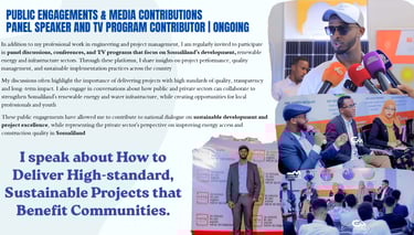 I offer practical and reliable engineering solutions that focus on creating long-term value. My work covers design, supervision, technical evaluation, and system optimization for renewable energy, water systems, and infrastructure projects. I make sure every solution is safe, efficient, and tailored to the real needs of the client or community.
