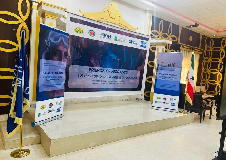 I participated in the Friends of Migrants – Business Roundtable & Skills Matchmaking Day as a company representative and entrepreneur. The event brought together private-sector companies, development partners, and institutions to discuss how businesses can support job creation, skills matching, and economic inclusion for migrants and host communities in Somaliland.
